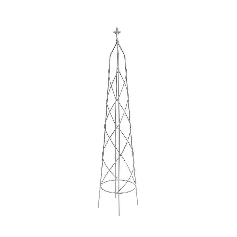 A one piece robust plant support with a contemporary structure shaped obelisk with final top.